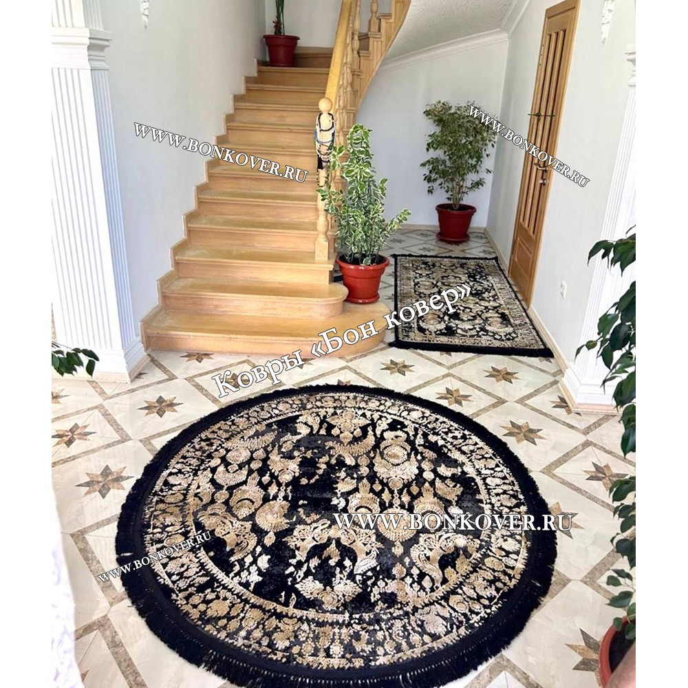 Современный Турецкий Ковер Дизайн 30665 Черный с Золотым Круг станет шикарным преображением жилого помещения, подчеркивая высокий статус хозяина.