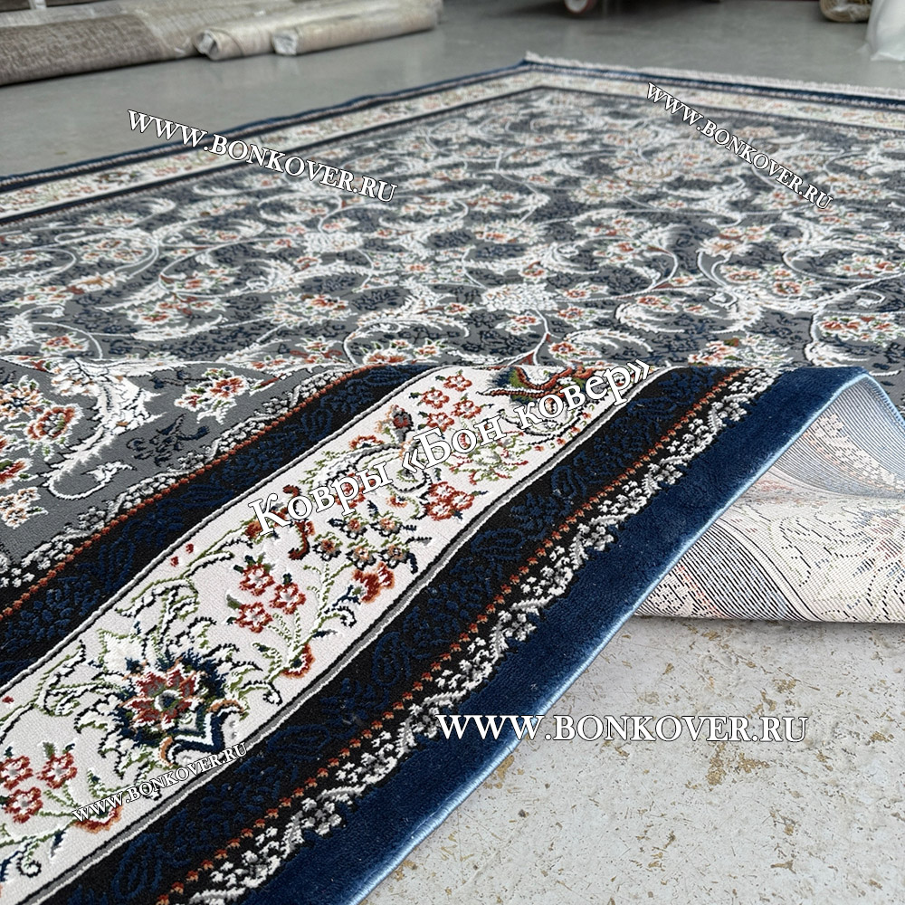 Импозантный Турецкий Ковер Для Гостиной Дизайн 30568 Синий наполняет интерьер комнаты теплом и уютом, гармонично сочетает в себе изящество и красоту. Он выполнен из экологически чистого сырья, прочный и долговечный.