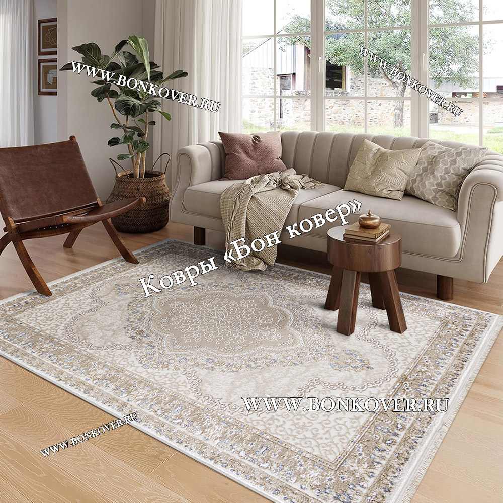 Невероятной красоты ковер, действительно с белым оттенком, как будто седым налетом. Очень интересный замысловатый рисунок, просматриваются бежевые и серо-бежевые тона, просто украшение комнаты!) Огромное спасибо замечательной компании Бон Ковёр! Самая крутая компания☺️