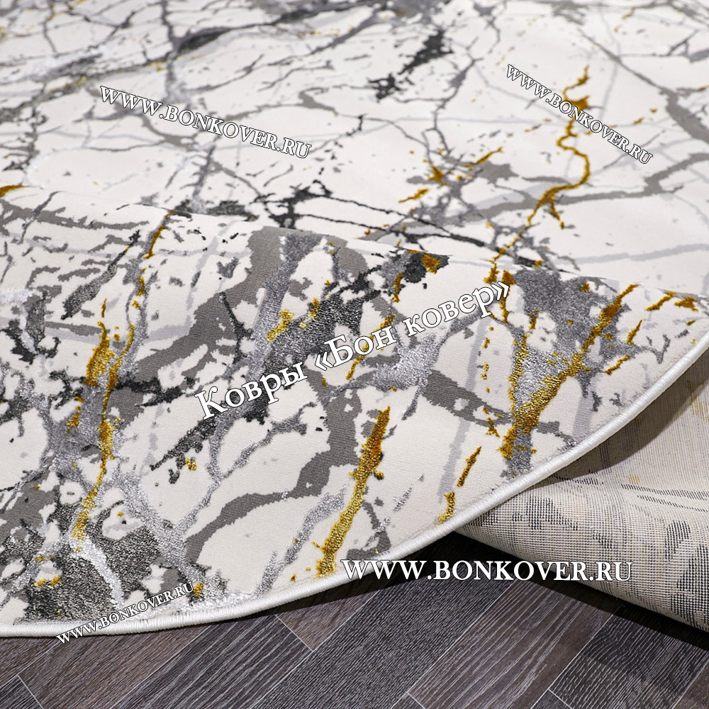 Импозантный Турецкий Овальный Ковер Белый с Золотистым дизайн 05 наполняет интерьер жилого пространства теплом и уютом, гармонично сочетает в себе изящество и красоту. Он соткан из современных материалов, комфортный и долговечный.